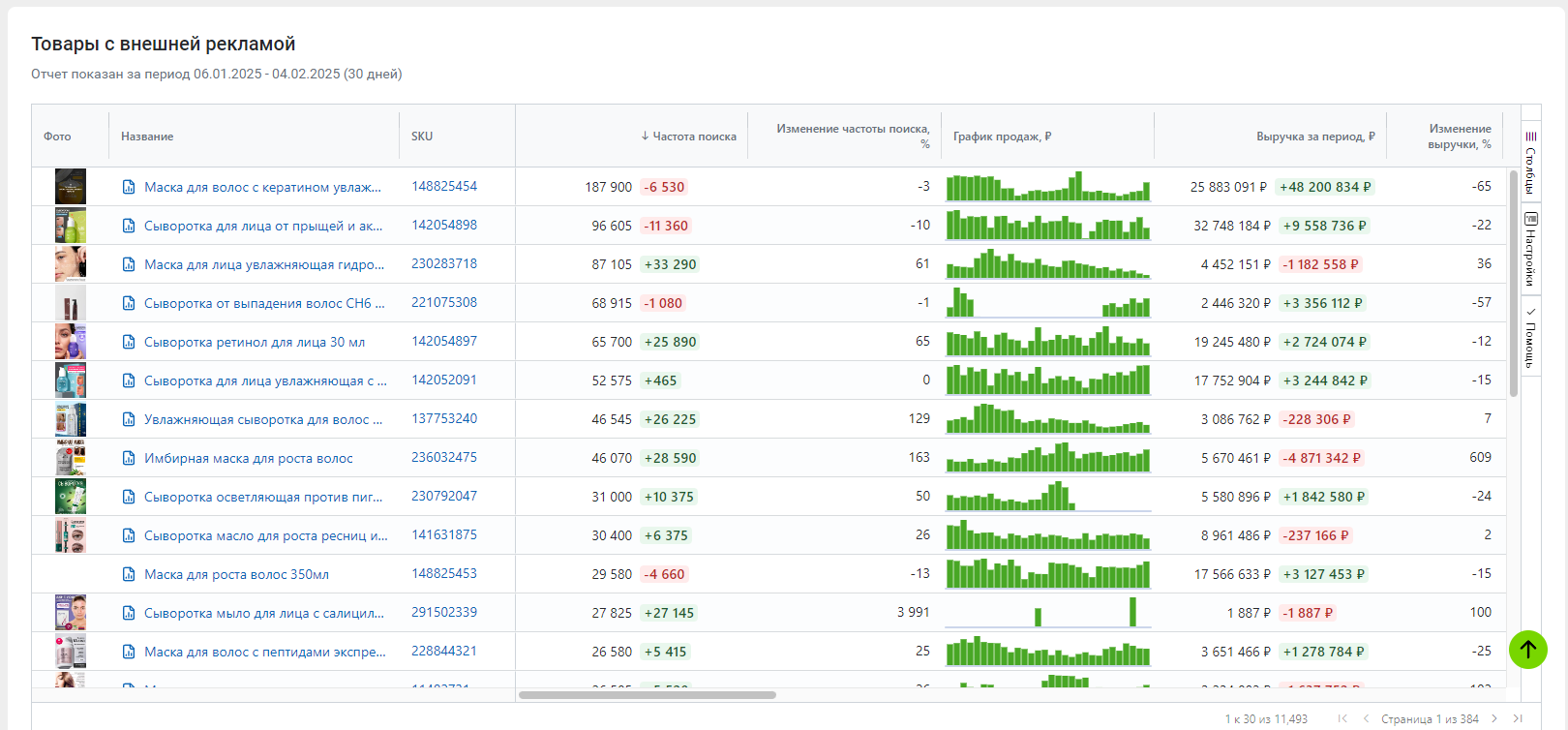 В течение суток все данные по внешней рекламе подтягиваются в кабинет. Если происходят сбои, вы всегда можете обратиться к вторичным показателям: эффективность рекламы можно увидеть по среднему росту заказов в неделю, количеству вводов артикула и бренда.