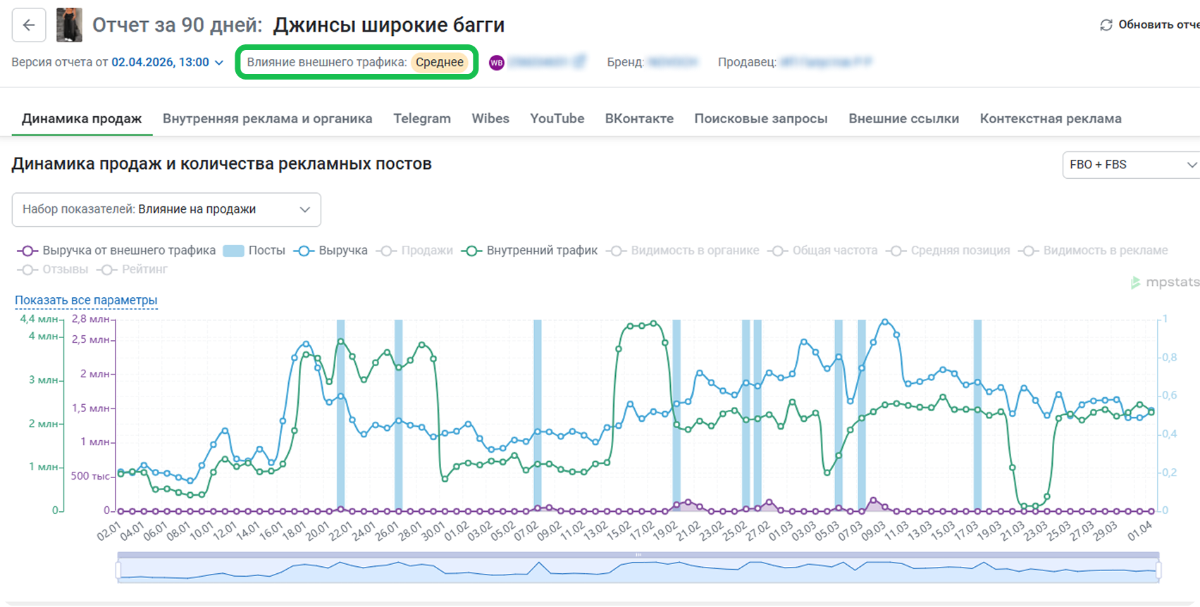В отчетах отображается новый расчетный показатель для постов, размещенных в соцсетях — эффективность внешнего трафика SKU.