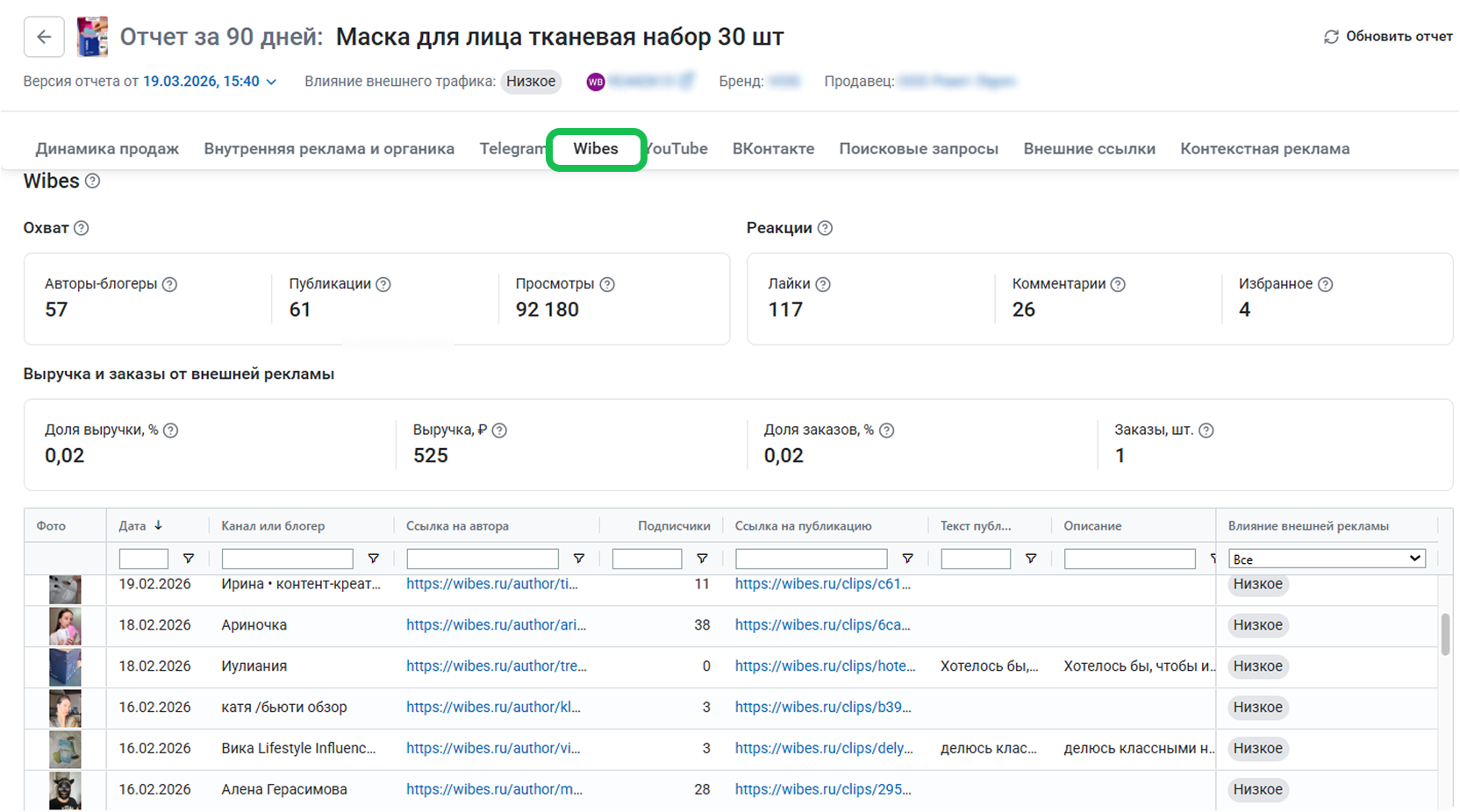 В поиске источников теперь можно видеть и анализировать товары с рекламой на платформе Wibes.