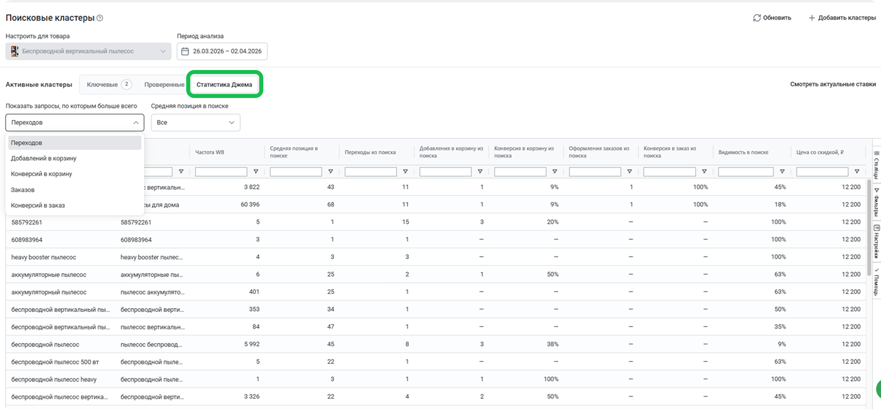 Добавили в блок поисковых кластеров Биддера новый раздел — Статистика Джем.