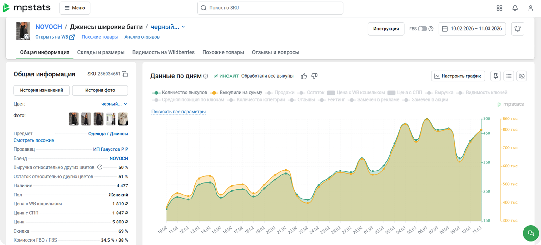6. Добавили в сводку блок «Выкупы». В детальной карточке товара теперь сразу отображается этот показатель.