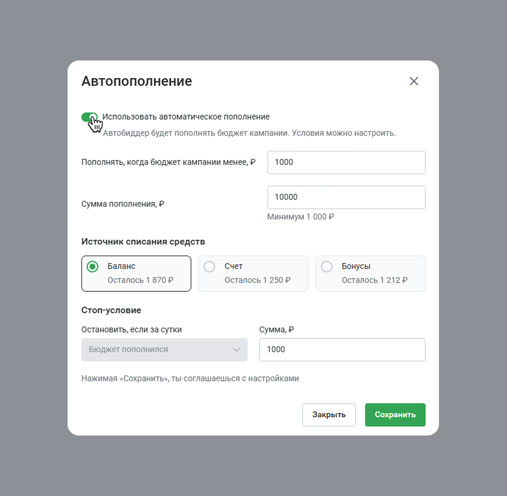 - Если пользуетесь Автобиддером, то через плагин вы сможете установить дневные лимиты и настроить автопополнение бюджета.