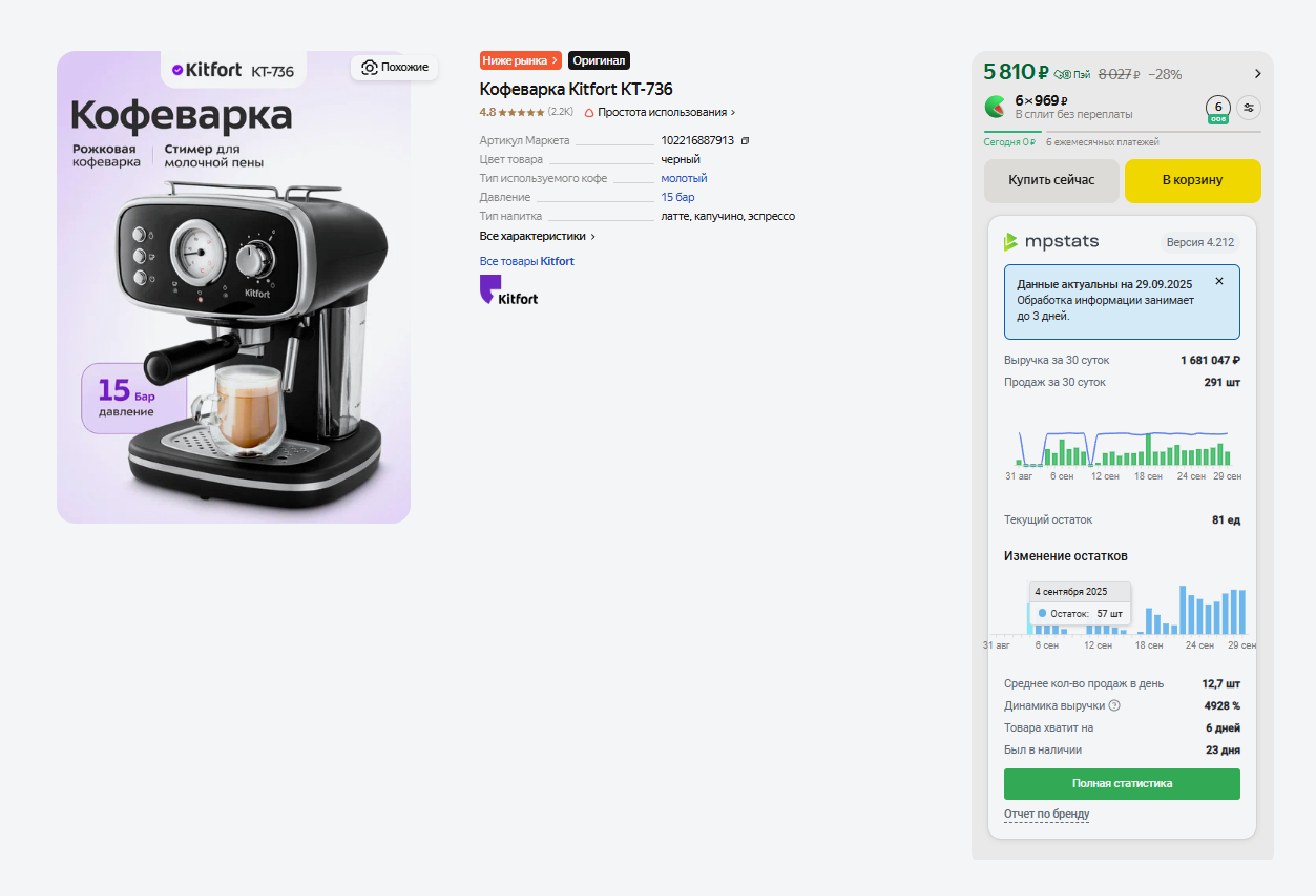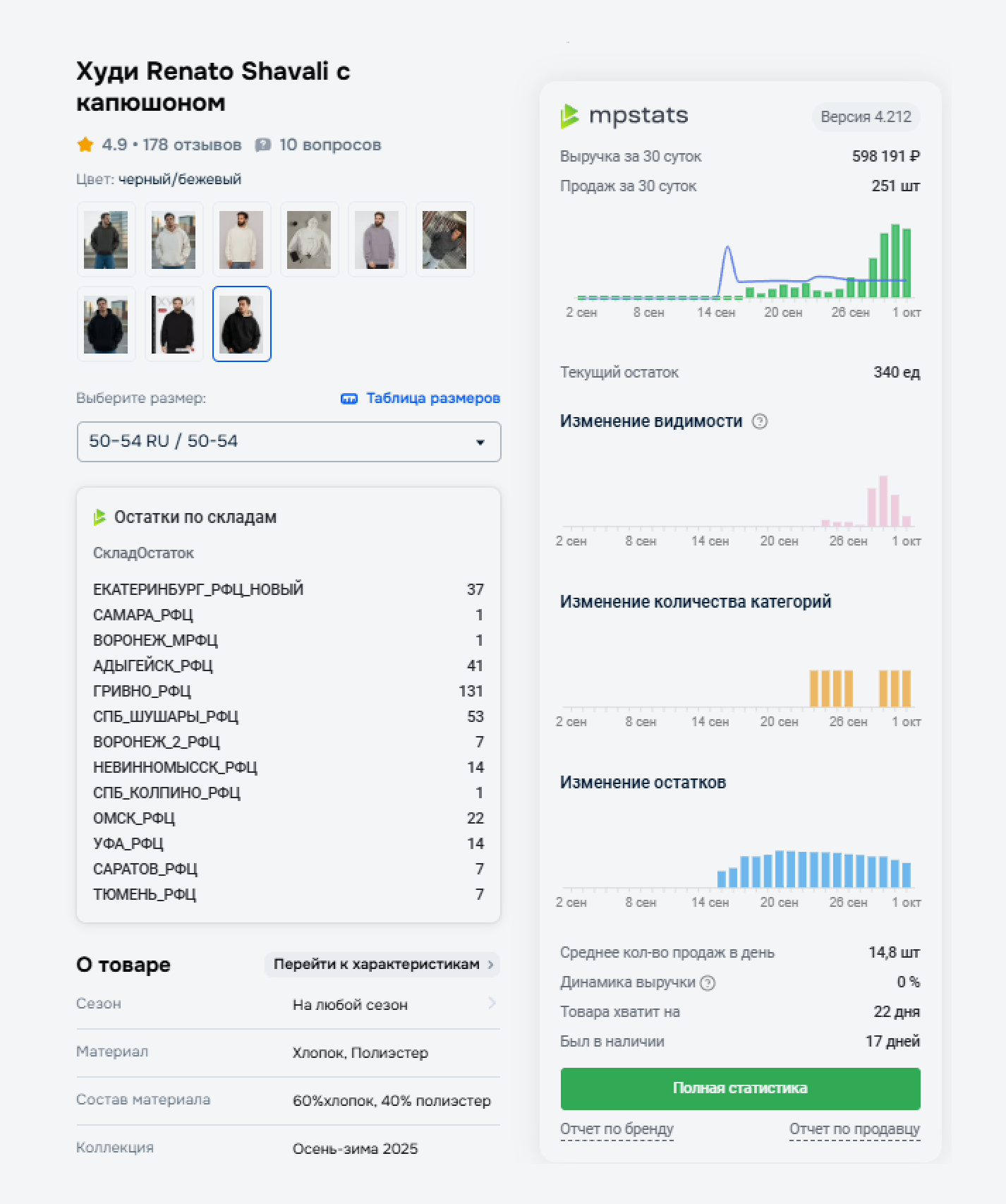На странице карточки вас ждет множество полезной информации. В блоке справа есть такие данные за последние 30 дней:
