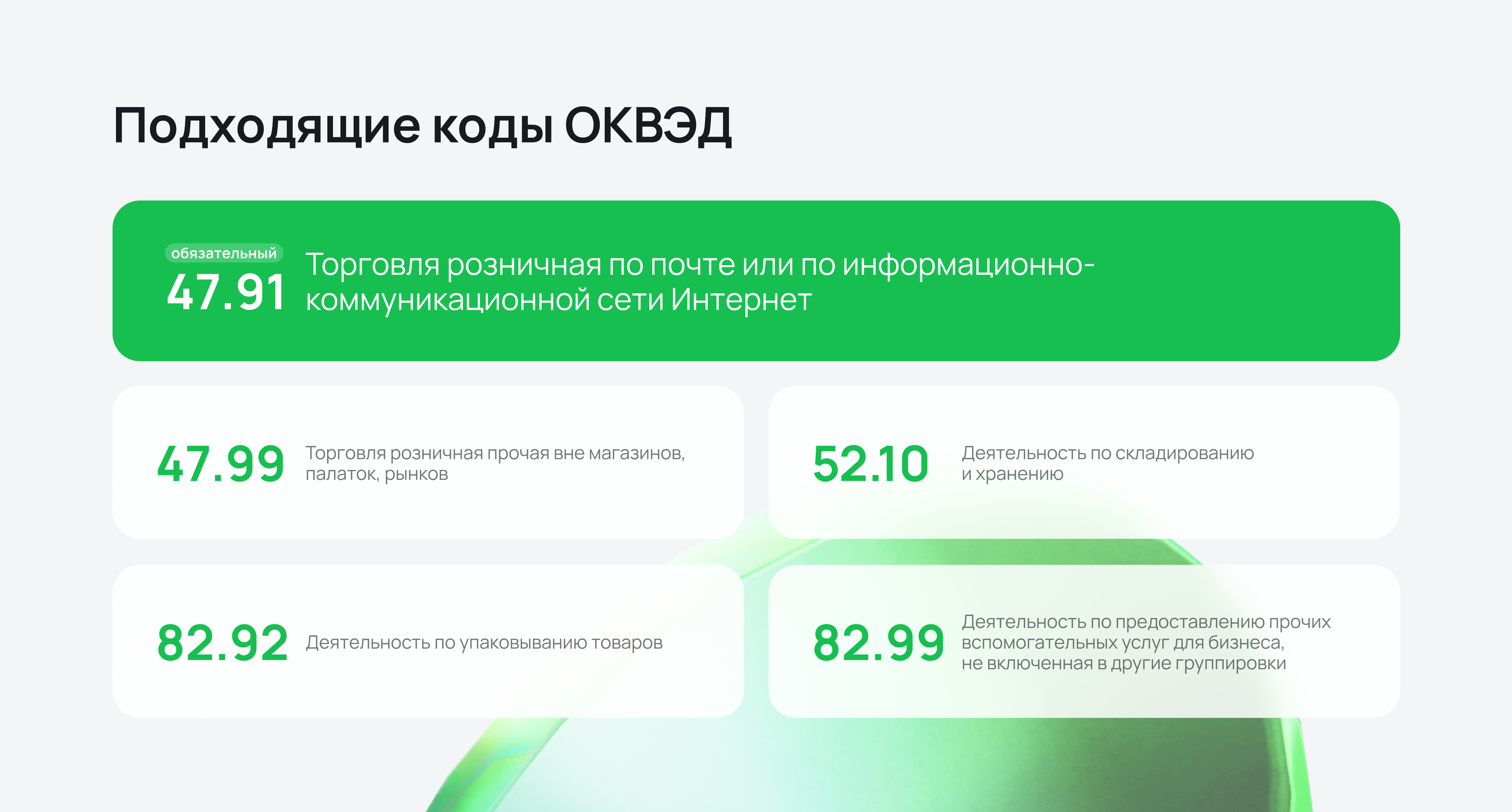 - Наличие юридического лица (ИП или ООО) и выбор системы налогообложения