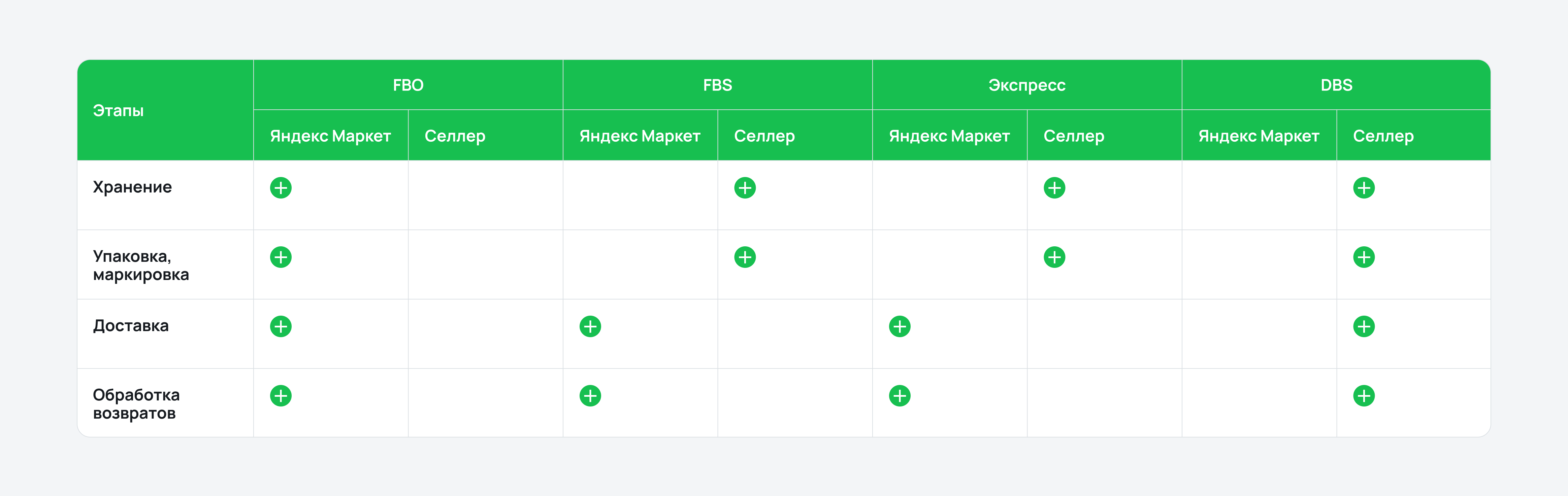 Такая схема работы подразумевает полное погружение в логистические процессы. Яндекс Маркет выступает только в роли витрины, а все остальное делает продавец: обрабатывает заказы, упаковывает и маркирует товары, доставляет вещи до покупателя и принимает возвраты. Это модель вам подойдет, если вы продаете скоропортящуюся или крупногабаритную продукцию.