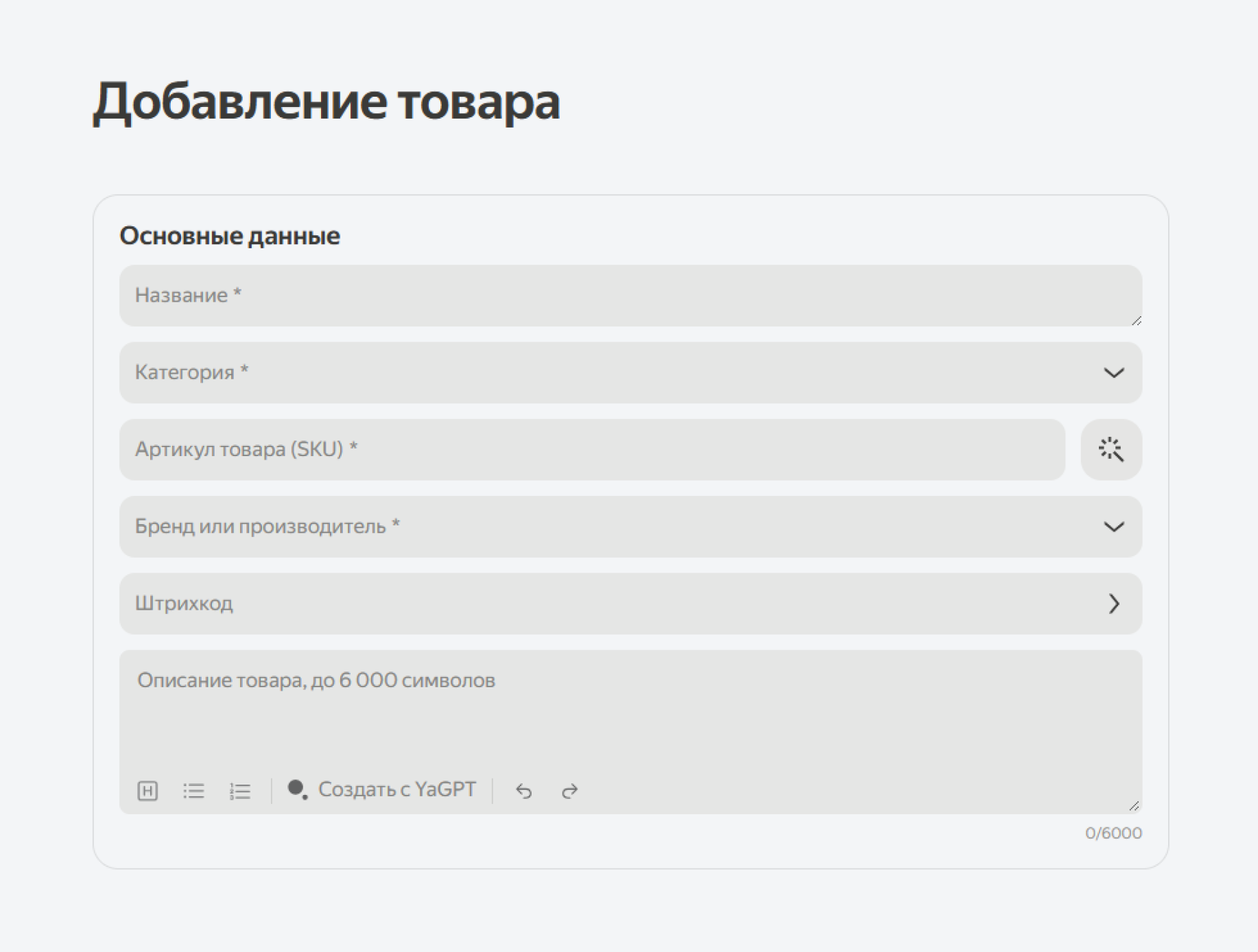 В том случае, если у вас уникальный товар и никто ранее его не выкладывал на площадке, тогда придется создать карточку с нуля. Для этого заполните все важные характеристики и загрузите изображение.