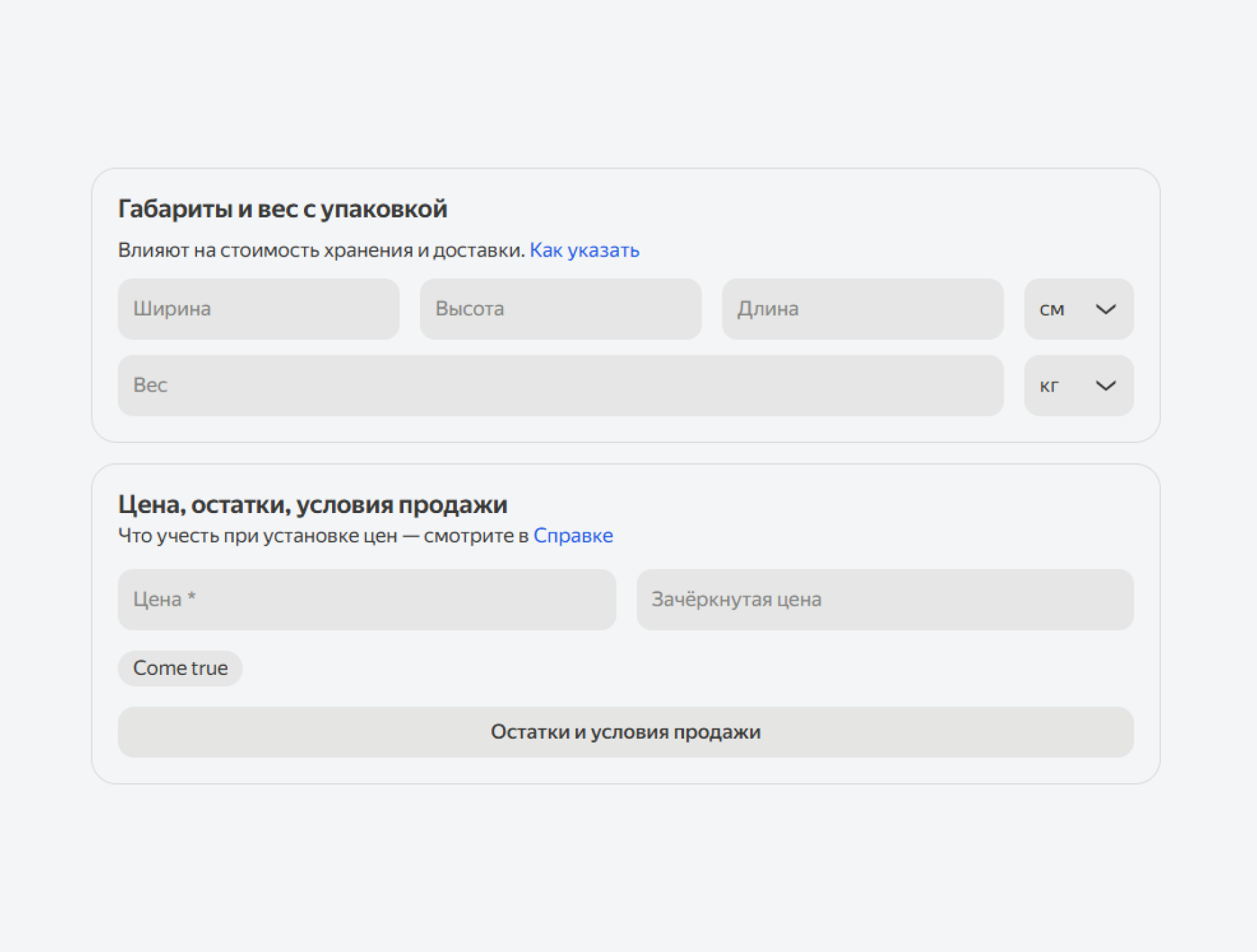 Бывает так, что нужно создать карточки для десятков товаров. Тогда лучше использовать загрузку через файл с перечнем данных.