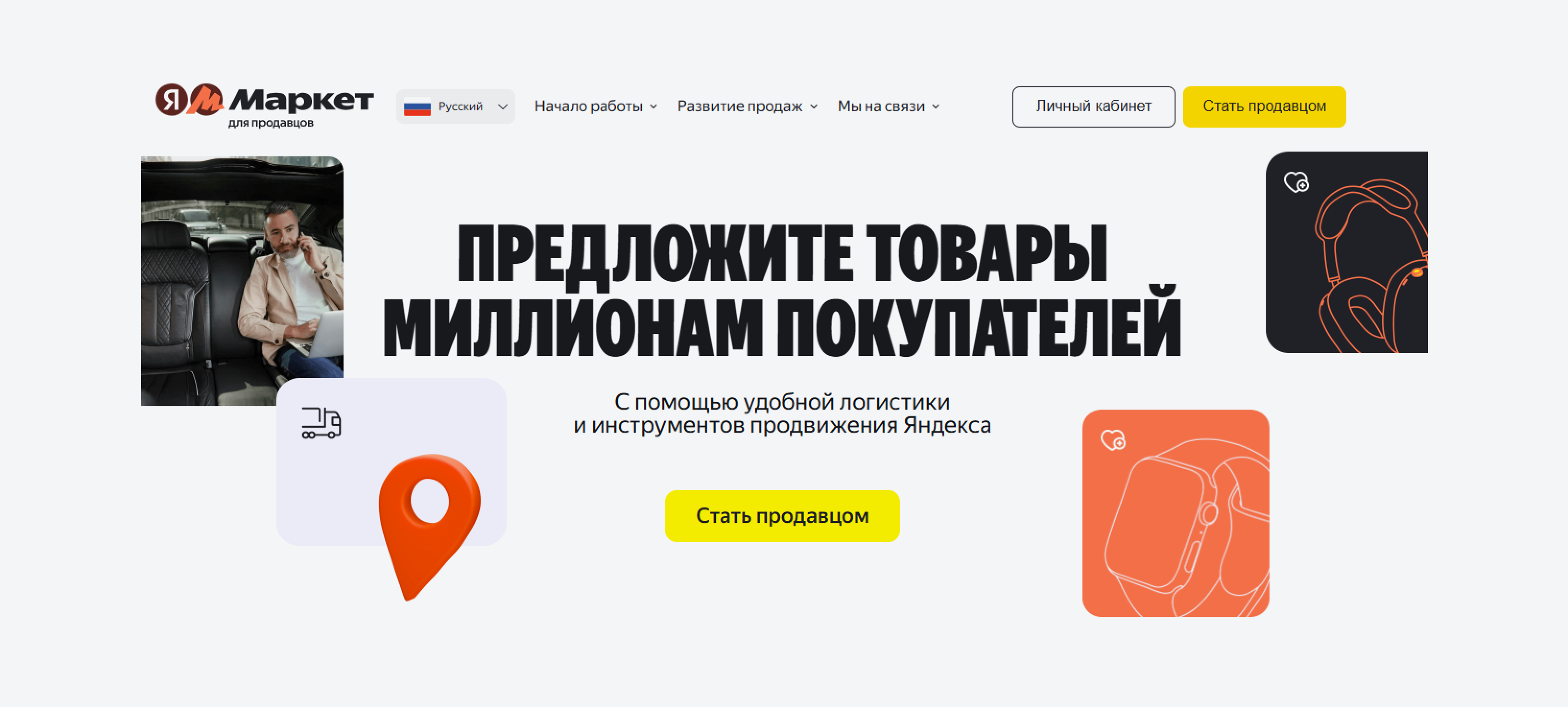 Яндекс Маркет входит в тройку крупнейших маркетплейсов страны. Он подходит как для старта бизнеса, так и для его масштабирования. Чтобы выйти на площадку, нужно зарегистрироваться и заполнить данные о товарах и доставке.