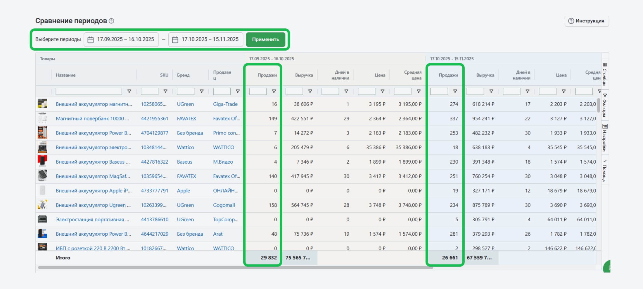 - выявление трендов и сезонности через сравнение периодов